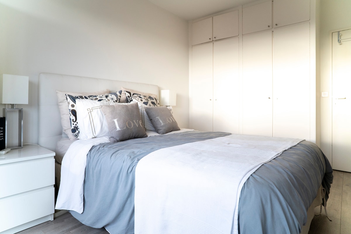 Refugio tranquilo y luminoso cerca del Louvre, aire acondicionado y balcón.