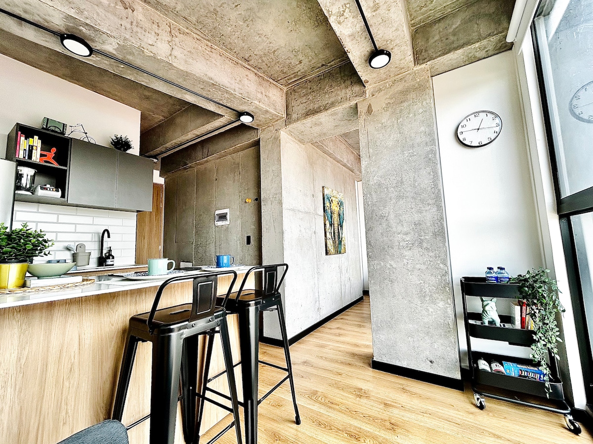Apartamento moderno, tranquilo, cómodo y seguro, con acceso a terraza con vista 360 grados de la ciudad. Ideal para parejas, familias, turismo gastronómico, cultural o deportivo, viajeros de conciertos, negocios o estudiantes. Ubicado en Nicolás de Federmán, uno de los mejores barrios de Bogotá, estrato 4 y 5, muy cerca del estadio el Campín, Movistar Arena, Parque Simón Bolívar, Universidad Nacional, CAN; cerca al aeropuerto, Embajada Americana, Zona Rosa, Centros Comerciales y Vive Claro.
