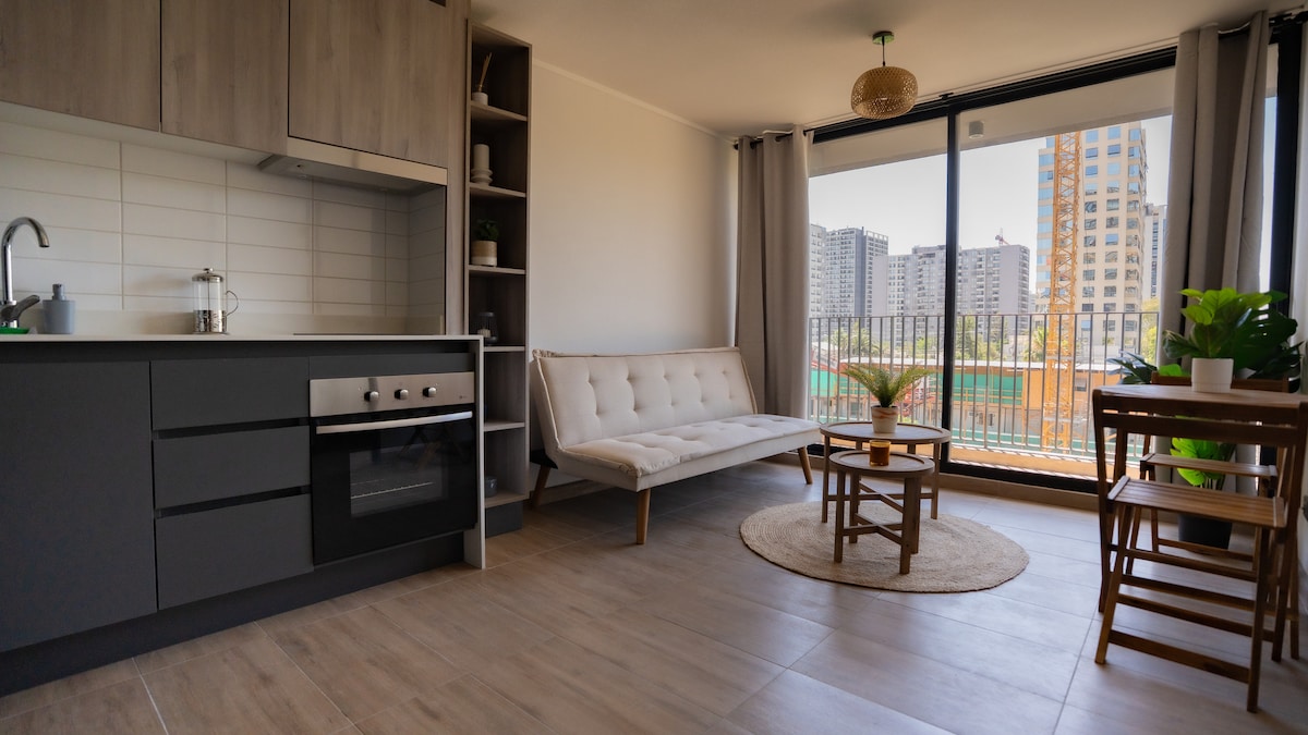Acogedor departamento a pasos de mall y metro.