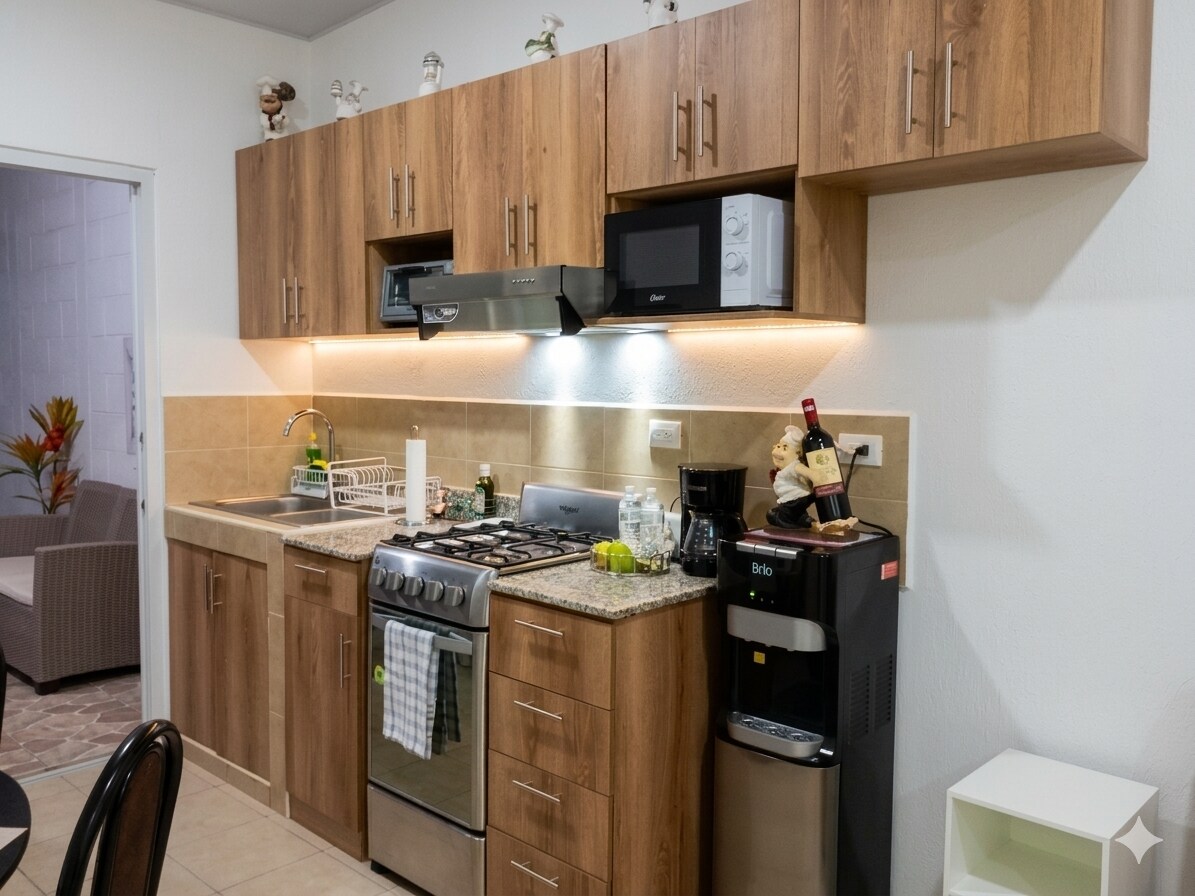 Disfruta de una estancia relajante en esta bella casa de 2 habitaciones, ideal para quienes buscan tranquilidad y confort. Ubicada en un entorno tranquilo, ofrece una linda área verde perfecta para descansar al aire y disfrutar de paz y privacidad. Cuenta con parqueo privado, AC para mantener la temperatura perfecta, cocina completamente equipada, lista para preparar tus platillos favoritos y un baño moderno y funcional. Para estadías cortas o largas, esta es tu mejor opción. ¡Te esperamos!