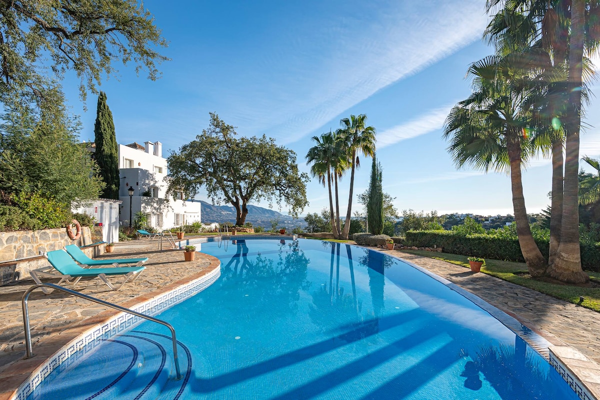 ESCÁPATE DEL INVIERNO PRECIOS DISPONIBLES PARA ESTANCIAS LARGAS FUERA DE TEMPORADA: NOV-ABR Relájate en este espacio tranquilo y elegante, ubicado en las hermosas montañas, a poca distancia en coche de algunos de los clubes de playa y tiendas más exclusivos que España tiene para ofrecer. El Oakhill es una comunidad privada cerrada con hermosas vistas panorámicas a las montañas y una piscina y zona de bar de 5 estrellas. El apartamento está muy bien amueblado y tiene terraza y un enorme jardín privado.