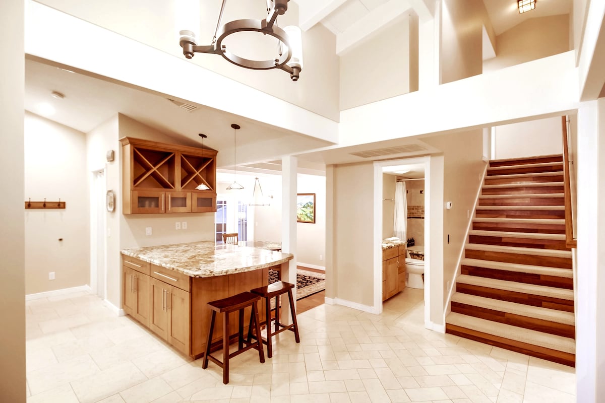This is your perfect Guest House with a salt & heated pool + hot tub. Located in a super quiet & very safe neighborhood in beautiful San Diego, 15 minutes drive to the beaches, downtown, La Jolla, Zoo, stadiums, Sea World, Convention Center + more. Hike up Cowell Mountain next door at Mission Trails Park or around Lake Murray. Smart TV, wifi, two zone AC, full kitchen, W/D combo, top quality finishes & furniture. Everything you need for memorable vacation! No smoking or vaping on the property.