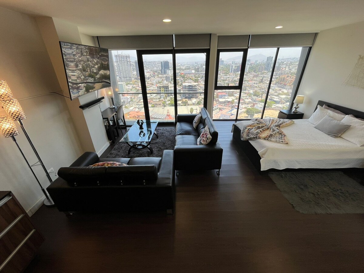 Estudio de lujo cerca a frontera+vista+piscina+gym