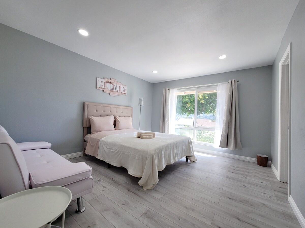 -You will love this beautiful 2024 NEW BUILT detached back house located in a SAFE neighborhood -Private entrance. 2 bedroom, 1.5 bathroom -Comfortable home for your group to recharge and explore -Super convenient location with many major supermarkets and restaurants around -Between Disneyland (16 miles) and Universal (29 miles). Only 1.9 miles to Hsi Lai Temple -Smart TV -Washer and dryer included -Free WiFi -Free assigned parking right in front of house ⚠️No party and loud music⚠️