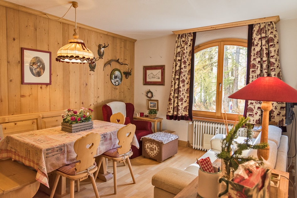 Apartamento estudio acogedor y luminoso equipado con todo lo necesario para una estancia perfecta en Engadin. El apartamento está ubicado en una zona tranquila y soleada y se distingue por su estilo cálido y bien terminado. Está a 5 minutos andando de los remontes de Marguns, que conducen a la zona de esquí de St. Moriz. Tanto en verano como en invierno, es la base perfecta para paseos y actividades deportivas (esquí de fondo, patinaje sobre hielo, ciclismo, tenis, golf, pesca) en la región.