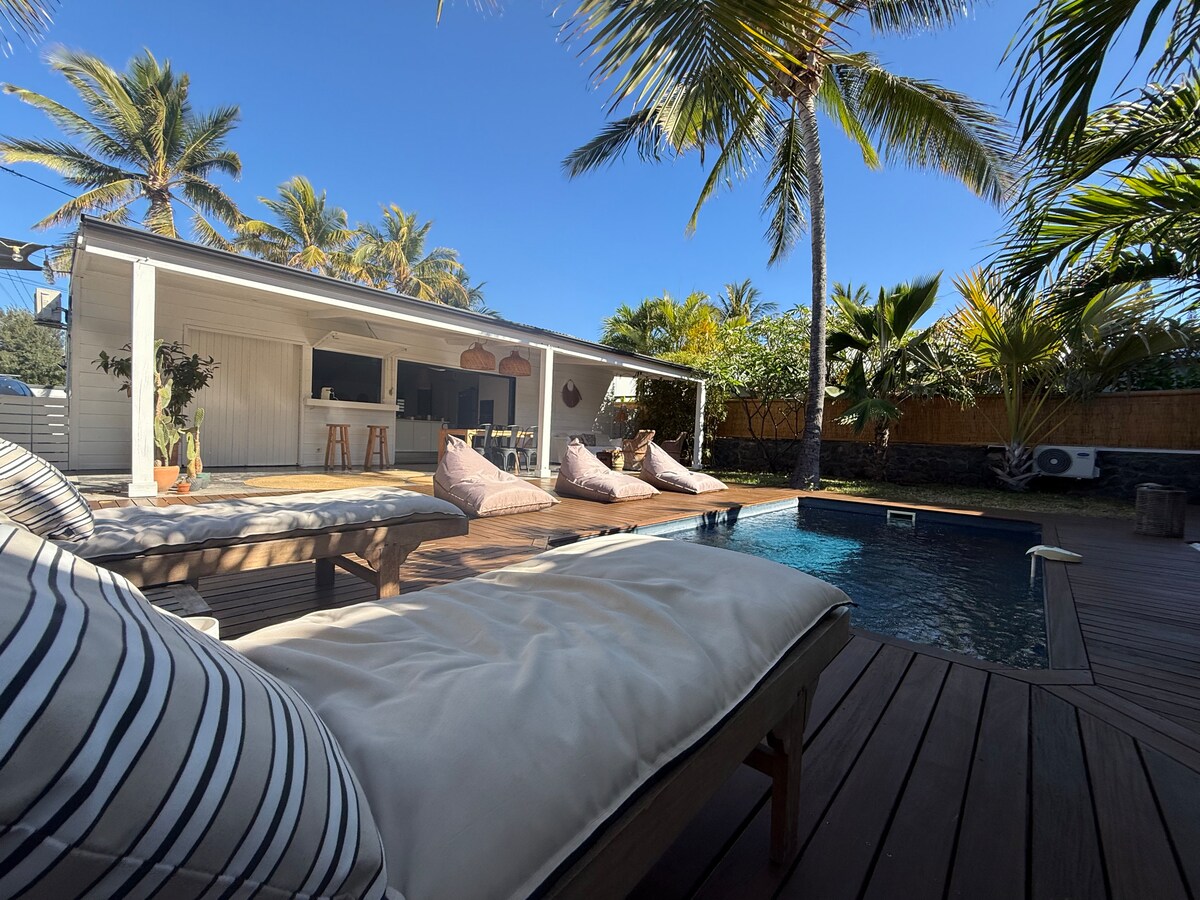 Encantadora villa de vacaciones de estilo moderno y depurado, con una amplia terraza de madera y una piscina de un solo nivel. También encontrarás una ducha al aire libre, ideal para disfrutar plenamente del clima tropical. Situada a solo 50 metros de la laguna y muy cerca de todos los servicios, esta villa es perfecta para una familia pequeña o dos parejas que deseen alojarse en un entorno privilegiado. También dispone de dos plazas de aparcamiento privadas.