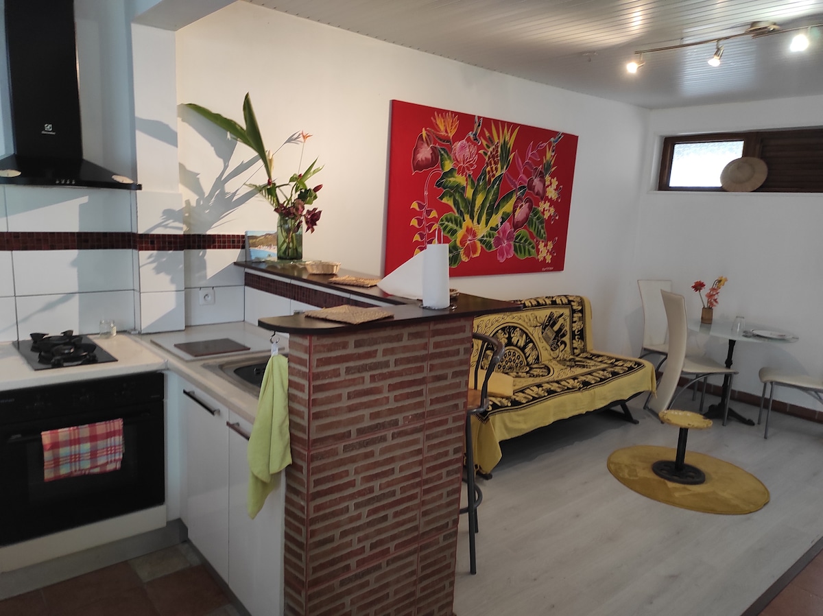 En SAINT-JOSEPH, estudio tranquilo, acogedor, ventilado y seguro de 35 m² con terraza de 20 m² en un entorno verde totalmente reformado. vistas despejadas al campo. Parte trasera inferior de la villa Cerca de todos los servicios: parada de autobús justo delante de la villa, pueblo a 1 km fácilmente accesible a pie, río y lugar turístico de pícnic a 4,5 km (acceso en coche o a pie para excursionistas), playas a 20 minutos, capital y centros comerciales a 15 minutos, alquiler de coches a 10 minutos, taxis privados fácilmente disponibles