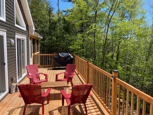 We found La Petite Maison, a chalet from the 1960's, modernized some while maintaining the charm. A quiet neighbourhood & neighbours. Large trees! Just a 5 minute drive from La Source Bain Nordiques, Rawdon Beach, grocery stores, restaurants and shops. For those who love the outdoors you have activities just minutes from the house (Golf, hike, winter fat-bike or mountain bike, snowshoe, cross-country) or downhill skiing a 12 minute drive. You'll enjoy the quiet neighbourhood.