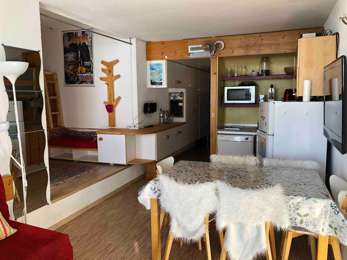Apartamento situado en lo alto de Les Arcs 2000 en la residencia «La Cime des Arcs» con todas las comodidades, salida de esquí a pie, piscina, sauna, baño turco, gimnasio y billar. La residencia está equipada con lavadoras y secadoras. Armario con calentador de botas de esquí. Redecorado este verano, ¡puede alojar hasta 7 personas! Consta de: - un dormitorio con cama doble - una habitación tipo camarote con litera triple - una sala de estar con cocina equipada y sofá cama - dos cuartos de baño