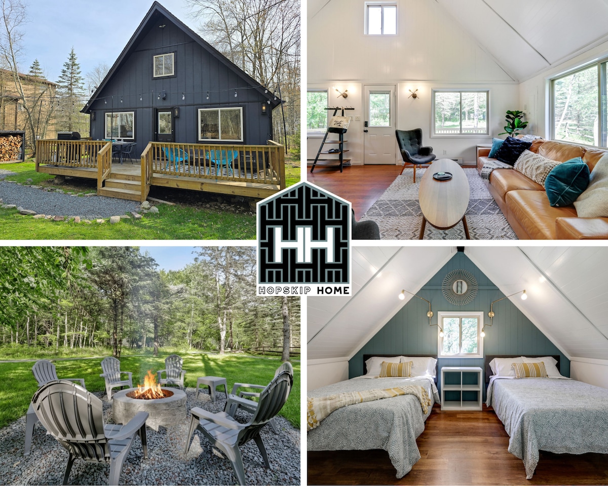 Esta primavera, VUELVE a tu CHALET MODERNO ubicado en el bosque de la comunidad de Arrowhead Lake, llena de servicios, y cerca de las principales atracciones de Pocono, como Kalahari a 14 millas, Camelback y Aquatopia a 17 millas, Mt Airy Casino a 18 millas y más. Esta casa ofrece la combinación perfecta de relajación y recreación. La primavera en los Poconos te está llamando: ¡te esperan senderismo, ciclismo, fogatas y más diversión primaveral!