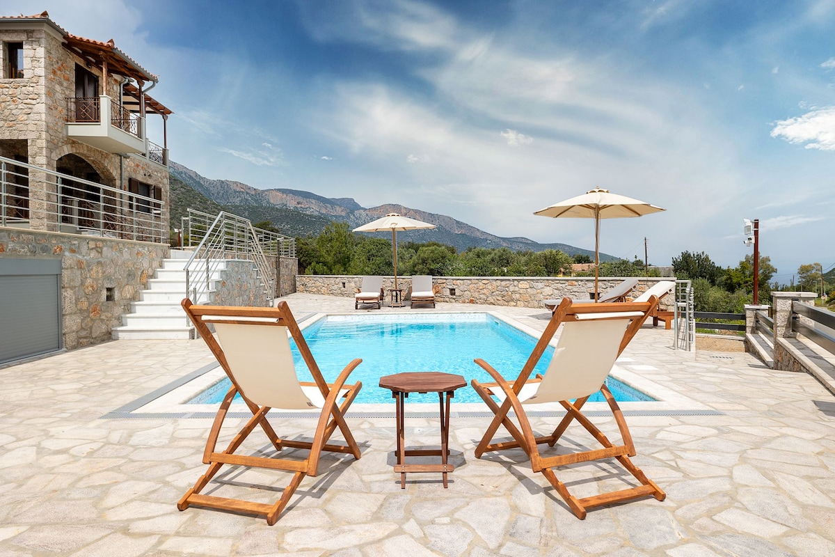 Ubicada en Mystras, Terra Nova Luxury Villa ofrece wifi gratuito y vistas a la montaña. También cuenta con piscina al aire libre de temporada, sala de ejercicios y jardín. El alojamiento cuenta con terraza y estacionamiento privado gratuito. Los huéspedes de Terra Nova Luxury Villa pueden jugar al tenis en el lugar o disfrutar del ciclismo en los alrededores. Descansa y relájate en este espacio tranquilo y elegante.