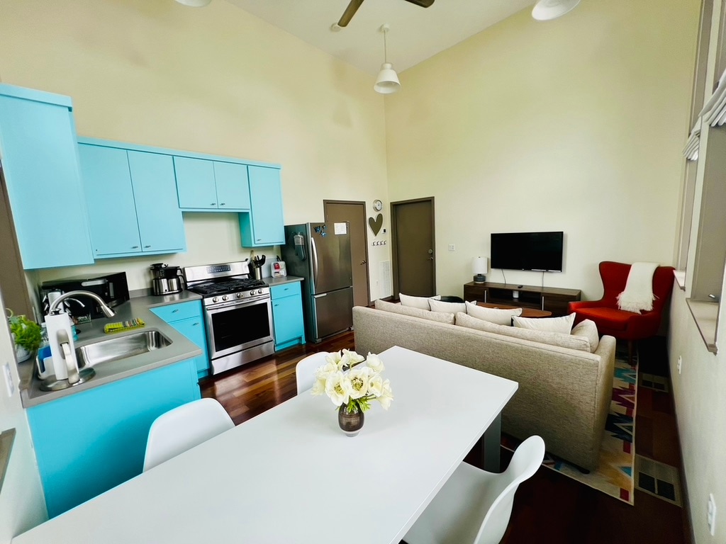 Bienvenido a nuestro hermoso apartamento de un dormitorio en los árboles. Este apartamento de 500 pies cuadrados es impresionante con sus techos abovedados, luz natural y amplios balcones. La impresionante ubicación, a poca distancia a pie de los clásicos restaurantes y cafeterías de Austin, ofrece comodidades y estilo modernos que lo convierten en una estancia obligada. Para los trabajadores remotos tenemos Google Fiber (1000 Mbps) Limpiamos a fondo y desinfectamos todas las superficies táctiles, incluidos los interruptores de luz, los mandos a distancia y los cordones de las persianas.