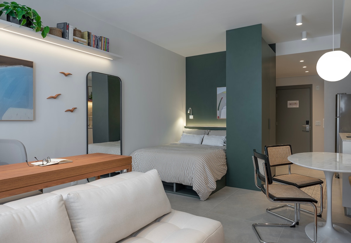 Estudio completo, confort y lujo. Ubicado en la torre residencial, ¡muy tranquilo! Dispone de una cama de matrimonio y un sofá cama. Nuevo y amueblado, equipado con TODO lo que un hogar necesita tener con comodidad y practicidad. Ropa de cama 100 % algodón egipcio con 400 y 700 hilos. Televisor de 70 pulgadas con internet y Netflix. ¡Toallas supercómodas y esterilizadas! Cafetera con cafés gourmet de cortesía para los huéspedes. Aire acondicionado frío y calor. Cochera. Cargador de coche eléctrico.