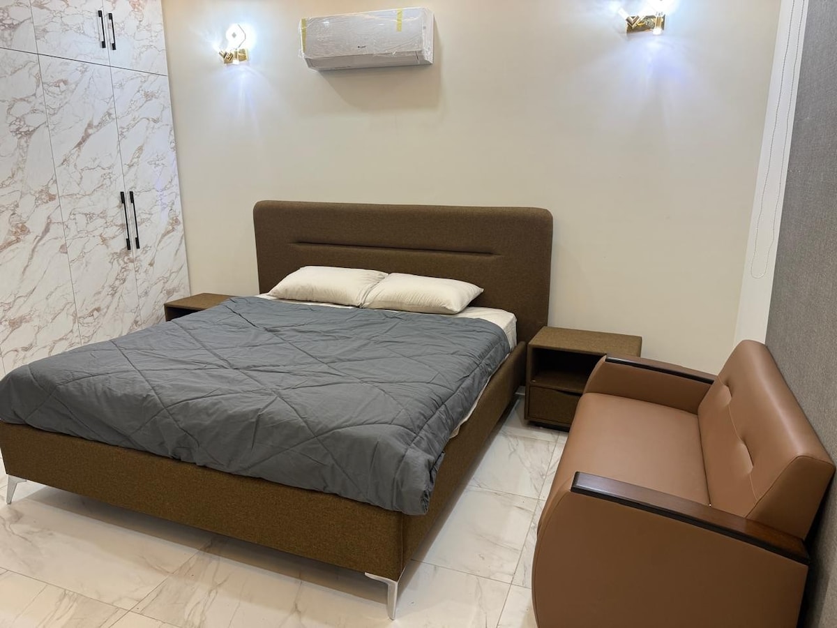 Bienvenido a nuestro moderno apartamento de 1 dormitorio en el corazón de Gulberg, Lahore. Ideal para personas que viajan solas o en pareja, este espacio privado ofrece comodidad y conveniencia cerca de la vibrante energía de la ciudad. El apartamento presenta una decoración contemporánea, una amplia sala de estar, una cocina bien equipada y un dormitorio acogedor para un sueño reparador. Ubicado en una zona privilegiada, estarás a pocos minutos de centros comerciales, restaurantes y atracciones clave. Disfruta de la privacidad y el encanto de Gulberg en tu hogar lejos de casa.