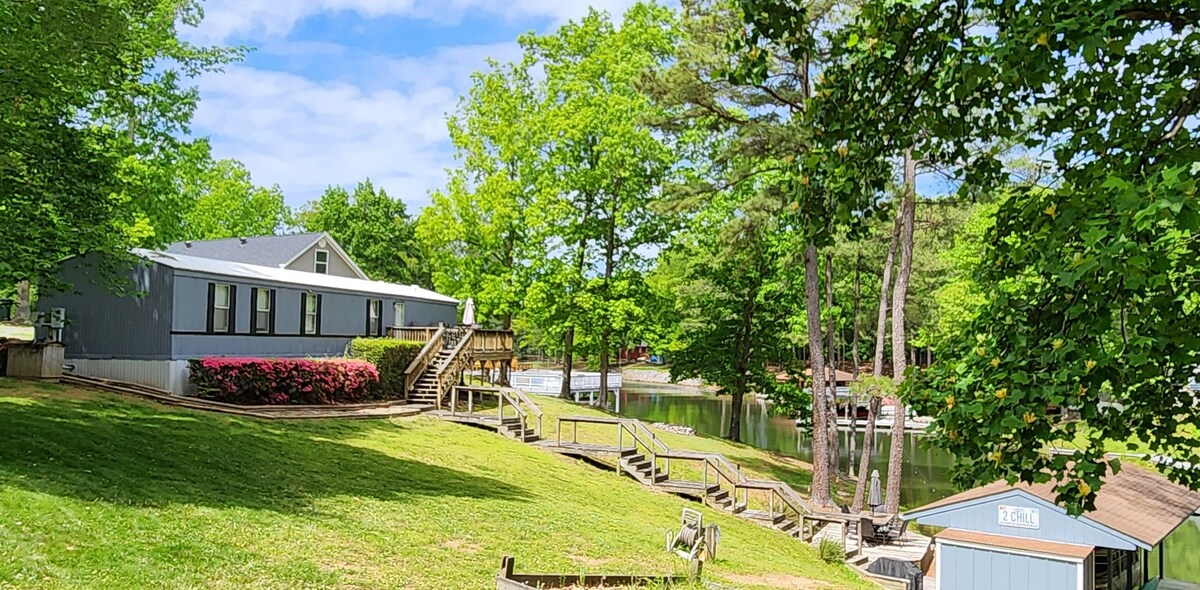 Esta exclusiva casa de 4,009 pies cuadrados hecha a medida se encuentra en la desembocadura de Lyons Creek y el lago Gaston con acceso directo al lago principal en la exclusiva subdivisión de West Winds. La casa ofrece vistas fabulosas, un gran patio plano, un pozo para hacer fogatas, una zona de playa de arena y buena profundidad de agua en el cobertizo para botes. La casa está situada en un gran punto con más de 550 pies de frente al mar. El exterior cuenta con un gran porche envolvente, con una parrilla, un comedor al aire libre para 12 personas y cómodos muebles de patio.