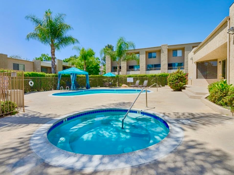 Nicely decorated and spacious condo on second floor. Queen bedroom has 42" flat tv and attached bath. 70" flat screen tv in living room with Netflix, Starz, ParamountPlus, and Max. High speed WIFI internet. Balcony overlooking the beautifully landscaped property including a lovely pool, built in hot tub and gas grill. Clubhouse with fitness equip Reserved off street parking. Very convenient location, close to groceries and good restaurants, also easy access to I8 corridor. Non-smoking premises.