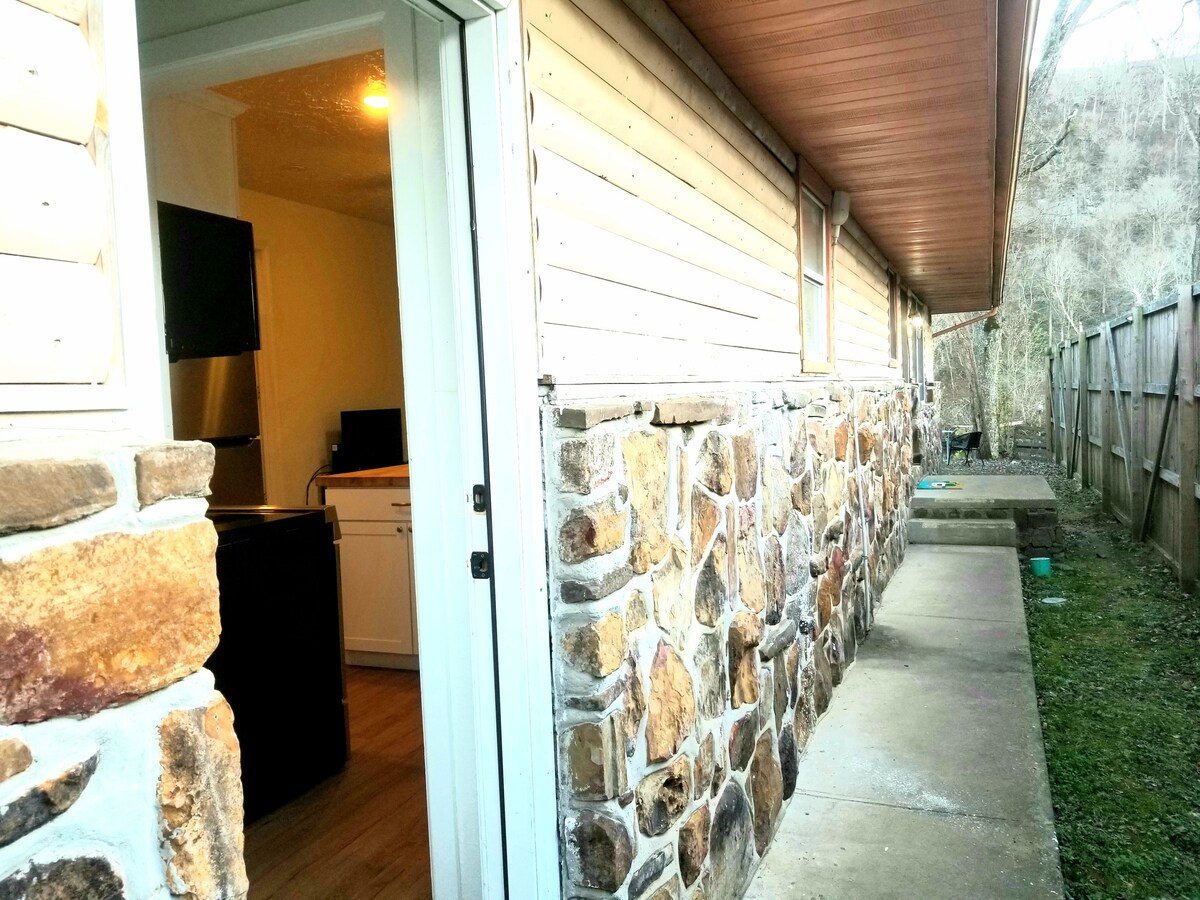 Relájate en esta tranquila casa de campo de 1 dormitorio en la propiedad de 10 acres del propietario. El dormitorio tiene 1 cama tamaño queen y el sofá es un dormitorio, por lo que dormirán 3 adultos. Se admiten niños y mascotas. Cocina completa con todo amueblado. Lavadora y secadora para tu uso. TV en el dormitorio y sala de estar con Roku. Internet incluido. A 3 millas del río White en Cotter y a 6 millas del hermoso lago Bull Shoals. Río Buffalo a unos 30 minutos y lago Norfork a unos 40 minutos. Amplio aparcamiento para tu barco.