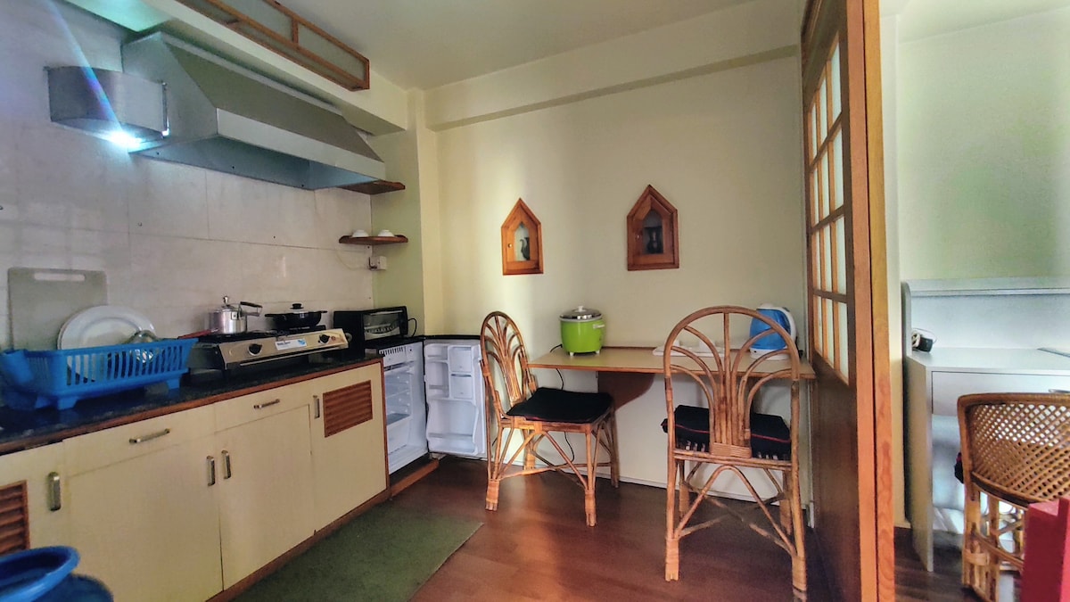 Bienvenido a tu espacioso hogar en Patan en el hostal de al lado. Estamos ubicados cerca del viejo Patan, un lugar perfecto para explorar filosóficos espirituales y artesanías tradicionales de Nepal. Este apartamento estudio es una habitación espaciosa con baño en suite y una acogedora cocina equipada con microondas, nevera y estación de té/café. También hay una mesa de trabajo y una sala de estar. Un espacio perfectamente privado en un hostal donde podrás conocer a otros viajeros cuando lo prefieras. El desayuno está incluido en la tarifa de la habitación.
