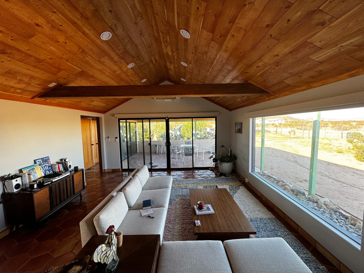 Relájate en una cabaña vintage de 1961 en el desierto, donde el encanto de mediados de siglo se combina con unas vistas épicas del Mojave. Ubicado en 25 acres junto a tierras vírgenes de BLM, disfruta del café al amanecer, las noches de la Vía Láctea y el sereno silencio del desértico. En el interior, los detalles retro originales se combinan con las comodidades modernas. A minutos de Joshua Tree, senderismo, baños de sonido, restaurantes y música en vivo en Pappy & Harriet's. Tu tranquilo refugio en el desierto está listo: ven a crear recuerdos inolvidables en el Mojave. Que disfrute su estadia!! Permiso para alquileres del condado de Santa Bárbara: CESTRP-2020-00387