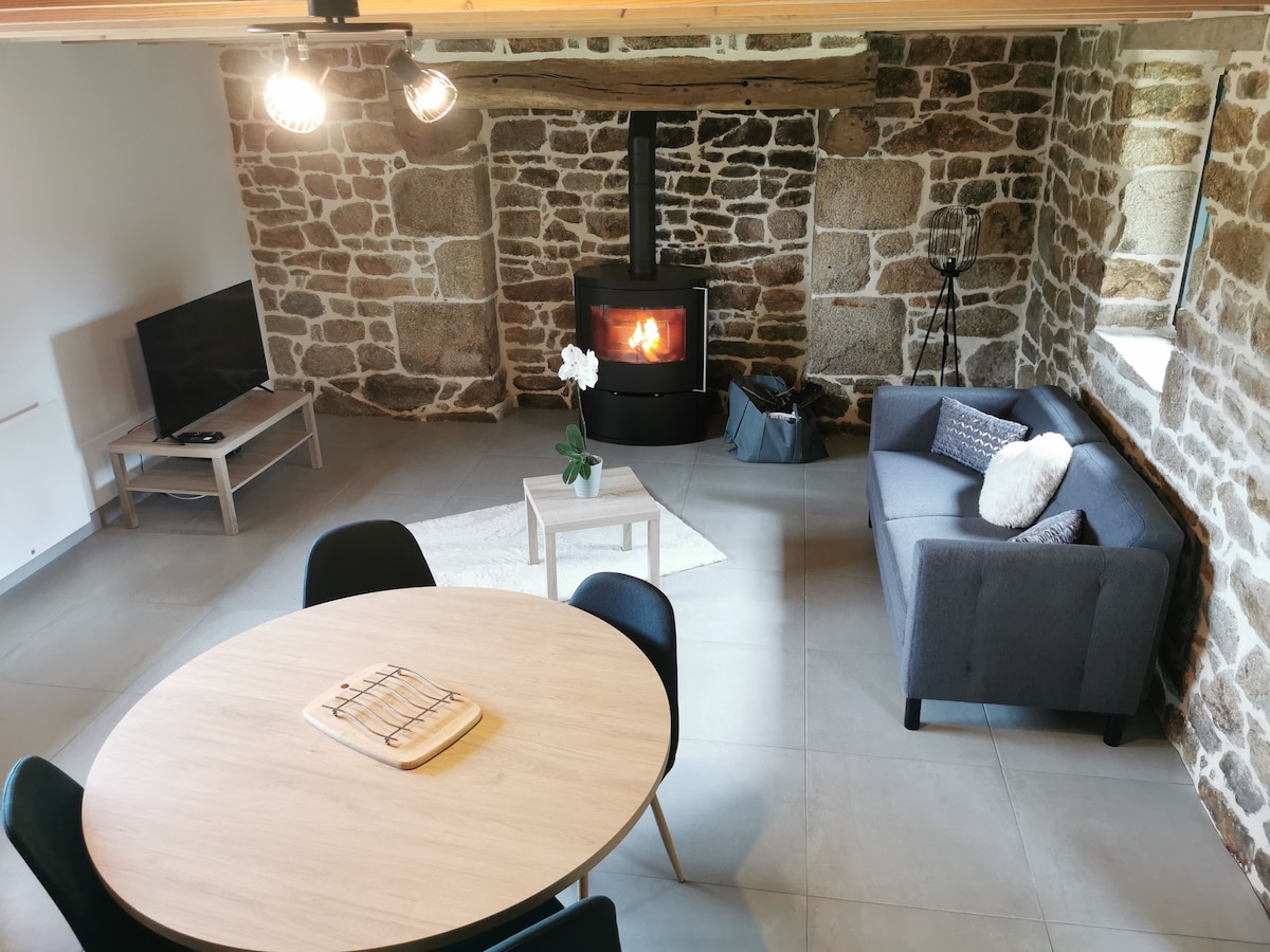 ¡Estaremos encantados de recibirle en Kerguen! La casa de campo propuesta está clasificada como «alojamiento de turismo 2 **» por el organismo OT 29. Se encuentra en una casa de piedra y tiene capacidad para 1 a 6 personas. Será un «lugar de recursos» donde disfrutará de la tranquilidad y la naturaleza al regresar de sus escapadas. Estamos idealmente situados para ir en 30 minutos a lugares de interés variados de esta hermosa región de Finisterre, ¡donde todos sus sentidos estarán despiertos!