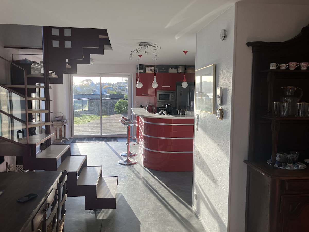 Casa de vacaciones a 20 metros de una playa de arena fina, muy tranquila, con vistas a la isla de Batz en la planta superior, ideal para estancias en familia o con amigos. Situada frente a la playa del Pouldu, a 5 minutos de Roscoff y de su Thalasso y a 5 minutos de la playa del Dossen , encontrará todas las comodidades para una estancia relajante. La planta baja totalmente renovada en 2023 le proporcionará una sala de estar de 60 m2 bañada por el sol orientada al sur.