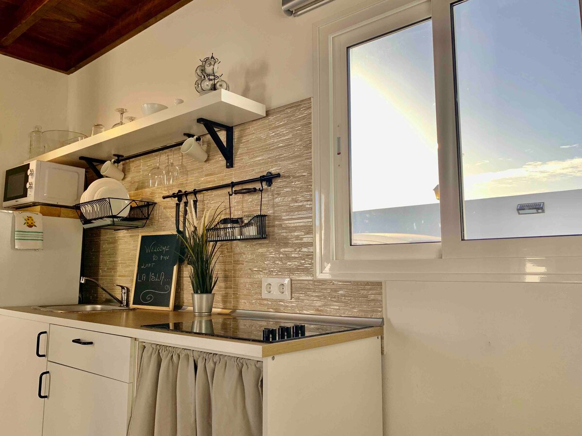 Scegli il nostro Loft come base per conoscere la splendida e affascinante Lanzarote: Ti sveglierai la mattina guardando il mare comodamente dal tuo letto, per concludere la tua giornata con una doccia idromassaggio e brindando poi in cucina alla vista delle luci sulla costa della capitale (e in alcuni periodi puoi vedere da casa il sole sorgere)! L'alloggio si trova in una zona residenziale ed è dotato di parcheggio auto privato. Licenza: VV-35-3-0008651