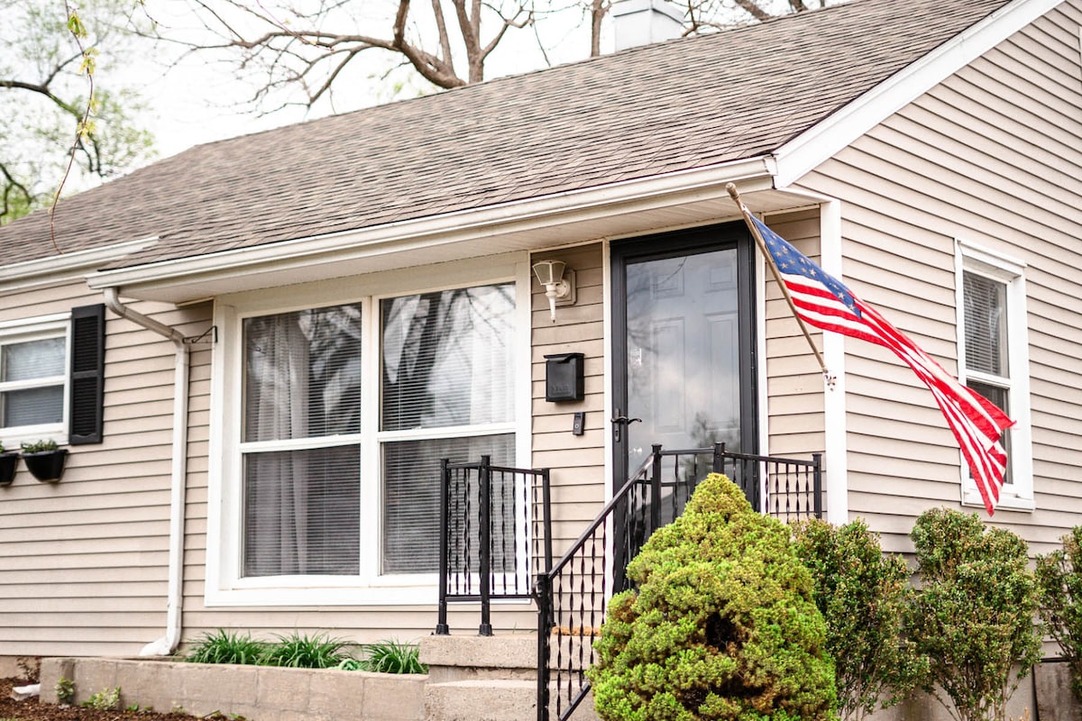 Acogedora casa moderna de mediados de siglo con 2 dormitorios y 2 baños, ideal para familias de torneos o viajeros de negocios. Esta es también mi casa personal cuando no estoy de viaje y la comparto con los huéspedes mientras estoy fuera. Configuración para dormir: 1 cama tamaño king, 1 cama doble, sofá cama futón y dos colchones de aire tamaño queen. A pocos minutos del Etown Sports Park, del centro de la ciudad, del lago Freeman y del hospital. Cocina totalmente equipada y un juego de arcade Pac-Man que a los niños les encanta. El patio trasero se abre a un gran campo comunitario con espacio para béisbol y fútbol, además de una parrilla y un fogón.