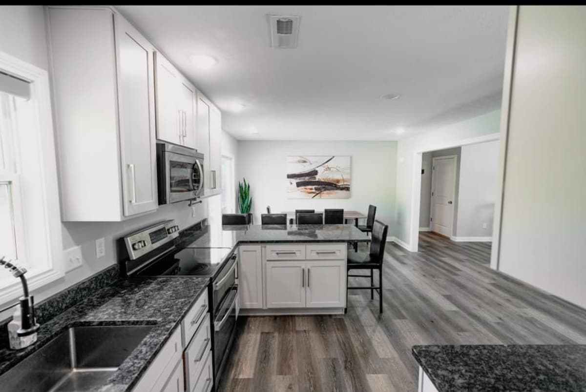 ¡Te damos la bienvenida a E-Town House en N Miles! *UBICACIÓN PRIVILEGIADA* Este es el lugar perfecto para tu estancia en Elizabethtown, KY. ¡A solo 3 millas de la I-65, a 2 millas del centro y de muchos restaurantes locales, y a 4 millas del parque deportivo Elizabethtown! WIFI de alta velocidad: ¡televisores inteligentes ROKU en todas las habitaciones! Hay mucho aparcamiento, cochera y un garaje para dos coches. Tres dormitorios: todos con colchones NUEVOS de alta calidad, 1 tamaño king, 1 tamaño queen, 2 individuales XL, 1,5 baños, cocina totalmente equipada con electrodomésticos de acero inoxidable y una cafetera/keurig
