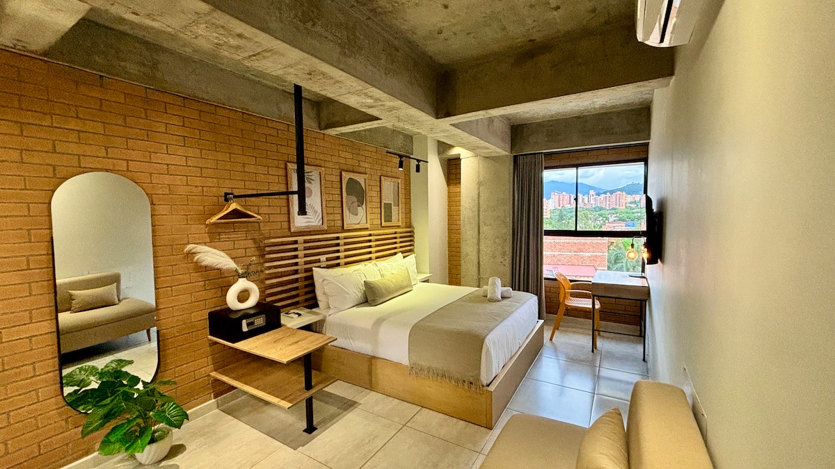 Let yourself be amazed by our cozy and visually striking space! Located in a peaceful, walkable neighborhood, Amanda is the perfect home base for your stay in Medellín. With high-speed internet, it’s ideal for remote work. Just one block from a main avenue, you’ll have easy access to public transportation, plus supermarkets and restaurants nearby. A warm and stylish stay awaits you!