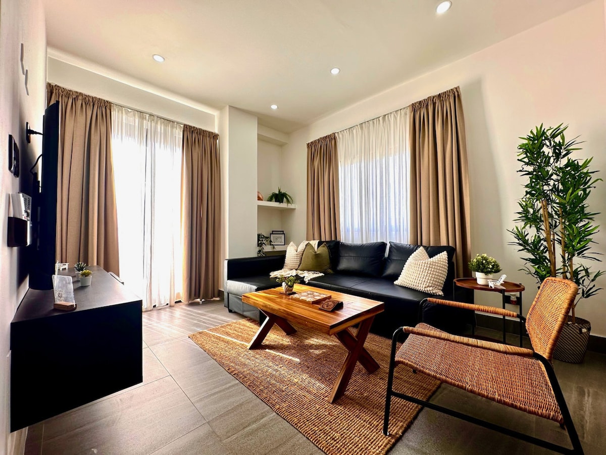 Bienvenido a "Apartamento Playa Bonita", tu espacioso y lujoso refugio en el corazón de Las Terrenas, ¡a pocos pasos de todo! Este moderno apartamento, que lleva el nombre de la querida Playa Las Ballenas, cuenta con una decoración de inspiración costera y una cocina gourmet. Relájate frente al televisor de 65 pulgadas o disfruta del balcón privado con sofás al aire libre y una parrilla para barbacoa. El edificio ofrece servicios de primera calidad, incluida una piscina en la azotea. ¡Tu aventura en Las Terrenas comienza aquí! Estacionamiento para 1 carro.