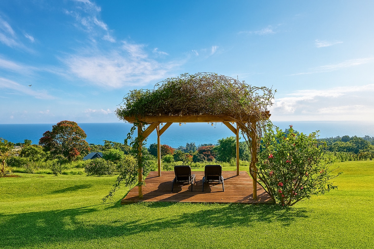 ¡La costa de Hamakua en todo su esplendor! La casa de invitados, con capacidad para 4 personas, está situada en un acantilado con vistas despejadas al mar. El aire acondicionado en ambas habitaciones garantiza que todos estén cómodos después de un día de diversión en la isla. Disfruta observando las estrellas en noches despejadas, viendo ballenas durante la temporada de ballenas o simplemente disfrutando del sol y los vientos alisios. A minutos de tirolinas, cascadas, jardines botánicos y a solo 16 millas al norte de Hilo. No se admiten niños menores de 12 años.