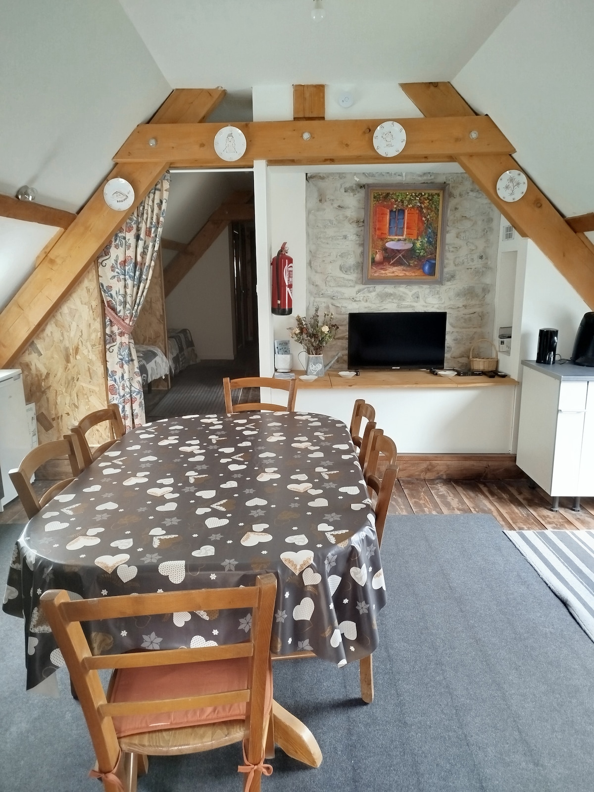 2 habitaciones: 1 dormitorio de oficina, y una sala de estar- cocina para una pequeña cocina auxiliar, no se puede hacer cocina grande. El alojamiento tiene 35 m2 Baño privado. Aparentemente no fumador, pero se proporciona una zona al aire libre En una casa habitada arriba con entrada independiente. Casa muy fresca en verano Aparcamiento gratuito a 50 o 200 metros del alojamiento.