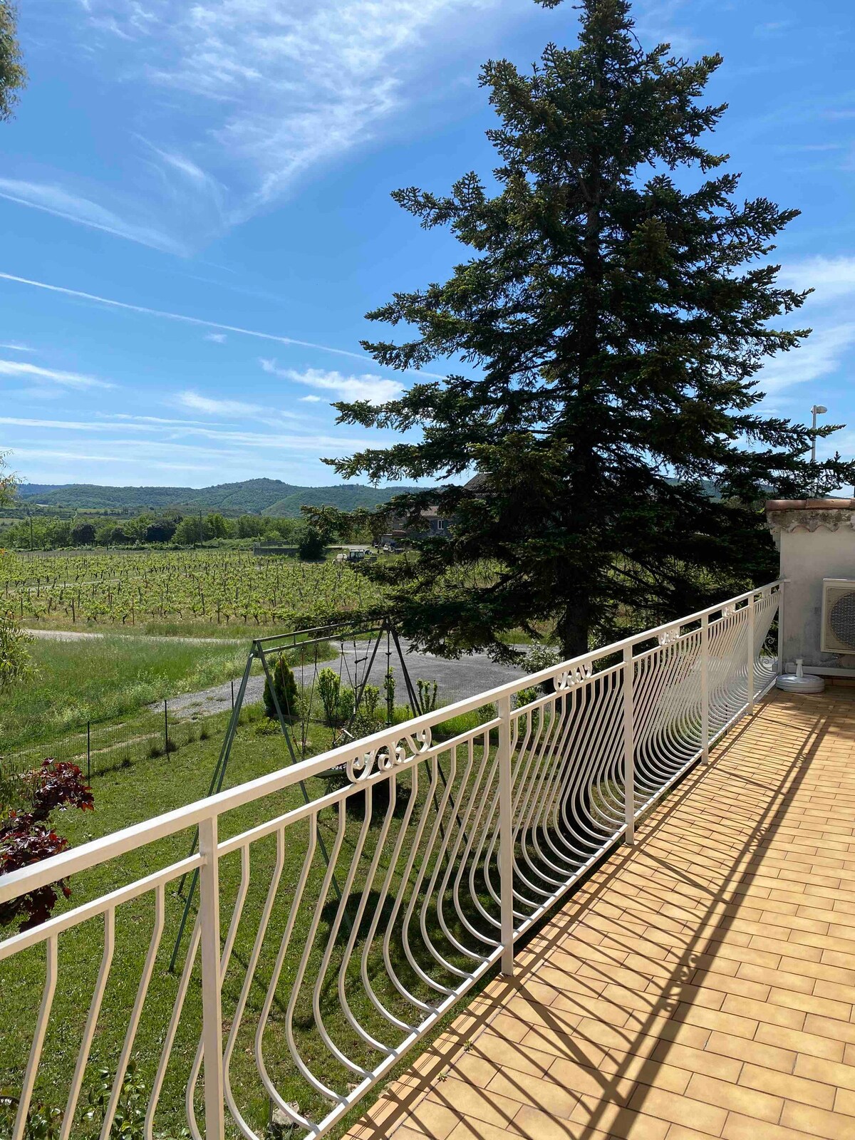 Vistas a los viñedos y las colinas de Coiron