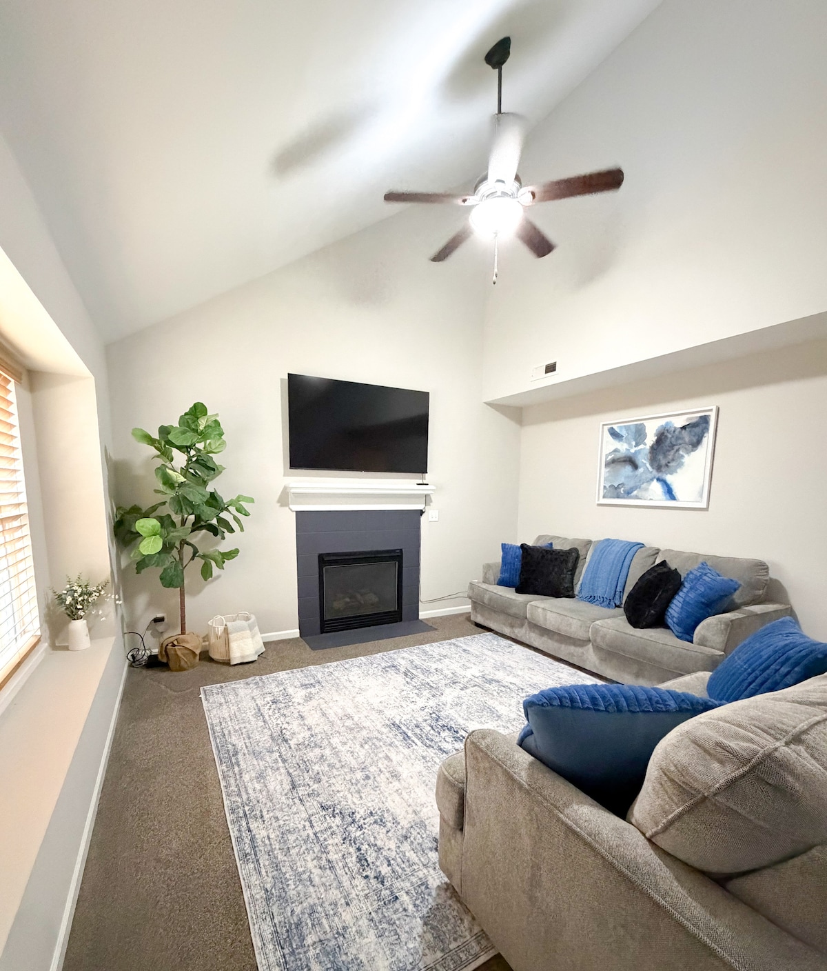 Disfruta del ping pong o del futbolín en el garaje adjunto. Echa una siesta en las cómodas camas o relájate en el suave sofá modular para ver la televisión. Estamos ubicados a 7 minutos de Walmart, Sprouts o Dillons y a 11 minutos de KU. Hay muchos restaurantes cerca. Puedes comer en la mesa de pícnic en el patio trasero vallado o disfrutar de una hamburguesa hecha en la parrilla eléctrica. En las noches frías, puedes encender la chimenea de gas para mantenerte más caliente. En la entrada caben cuatro coches y también hay espacio en la calle.
