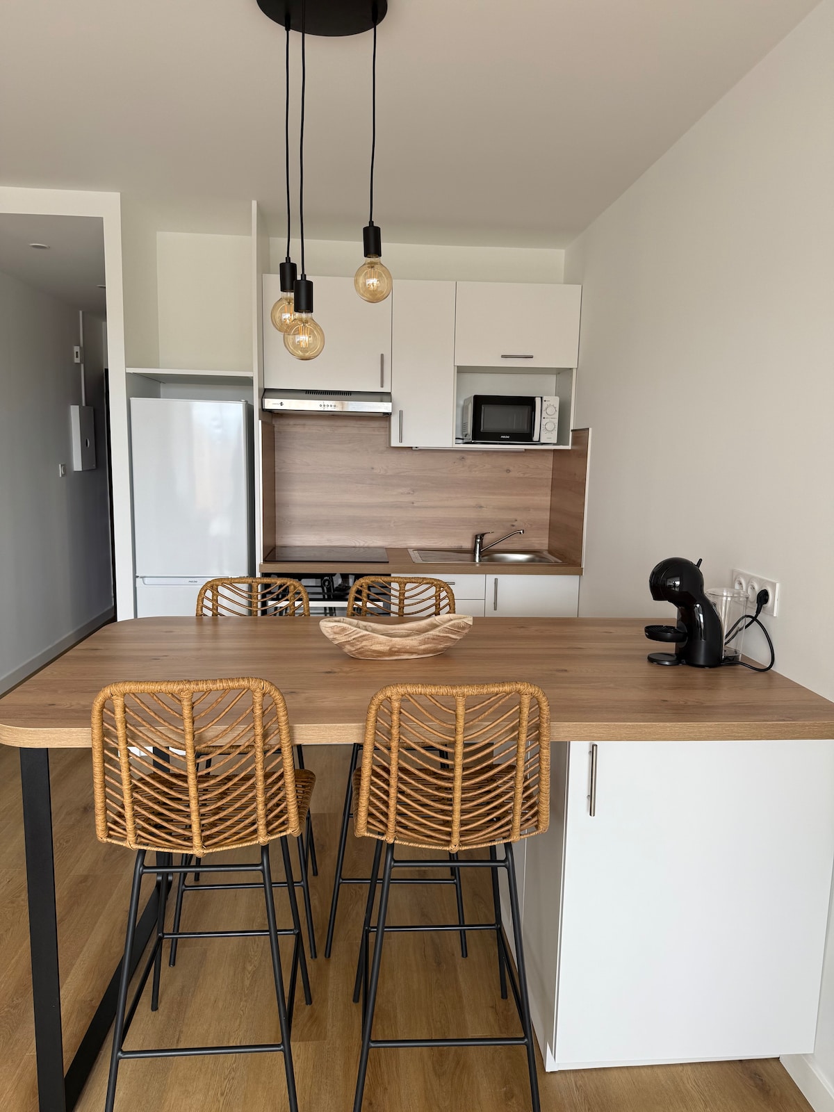 Estudio idealmente situado con acceso directo a la playa y a 10 minutos a pie del transatlántico Le Lydia caminando por el callejón de las Artes. En familia o con amigos, te conquistará la tranquilidad de este alojamiento amueblado decorado con buen gusto y totalmente equipado para 2 personas y un niño. Se encuentra en el primer piso de la residencia «Le Palm Beach» con ascensor. La logia ofrece bonitas vistas al mar. El alojamiento está equipado con conexión wifi de alta velocidad y TV con decodificador de TV HD.
