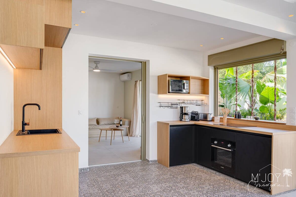 Alojamiento turístico amueblado de 3 estrellas, ideal para luna de miel, en la hermosa bahía de Manapany, a un paso de la piscina natural. Una amplia terraza frente al océano Índico hasta donde alcanza la vista. El inmenso ventanal permite disfrutar de este entorno excepcional desde el interior del alojamiento, preservando completamente su privacidad. El diseño de este alojamiento es lujoso y único, con materiales e instalaciones de alta calidad. Café y té incluidos. Wifi de fibra. tomas USB.