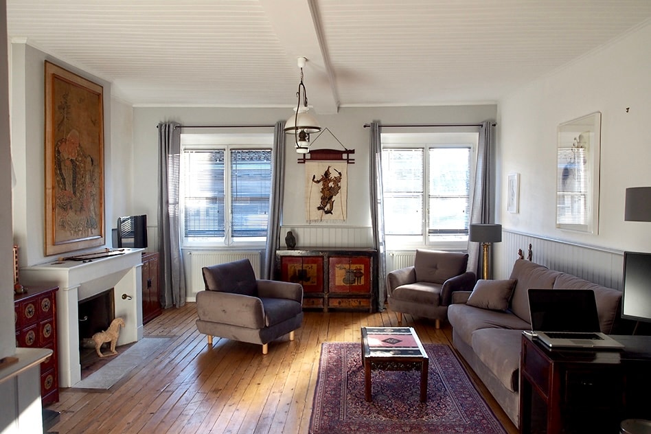 Bienvenido a este apartamento de 60m2 que consta de 3 habitaciones: - Una bonita sala de estar con cocina abierta totalmente equipada que da a la sala de estar. Con aire acondicionado. - Un cuarto de baño con ducha y WC - Una habitación con 1 cama queen size en dúplex - Un segundo dormitorio en entrepiso (sin puerta divisoria) con 2 camas individuales Hay 2 ventiladores disponibles en cada habitación, ya que no hay aire de aire. El apartamento está situado en el tercer piso en un edificio de piedra sin ascensor.