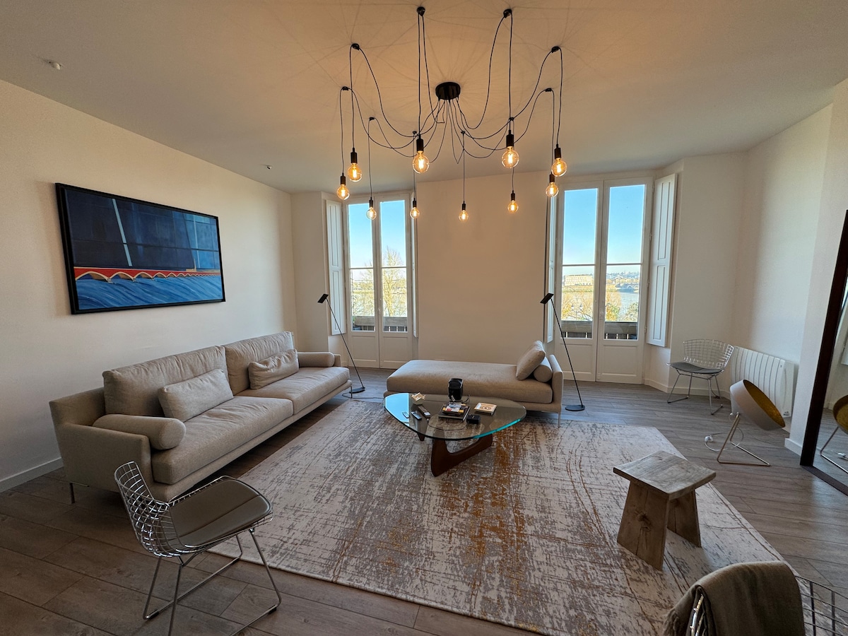 Hermoso y cómodo apartamento, 50 m2 de encanto y muebles elegantes. Hermosas vistas al río Garona con pequeños balcones. En la zona animada de la ciudad, ideal para visitar la ciudad a pie. ¡Toma una copa en el balcón y baja a cenar a los muelles! Tercer piso, no hay ascensor. Registro de entrada de 3:00 a 8:00. No se admiten llegadas tardías. Tercer piso sin ascensor. Zona de difícil acceso en coche, aparcamiento público de pago.