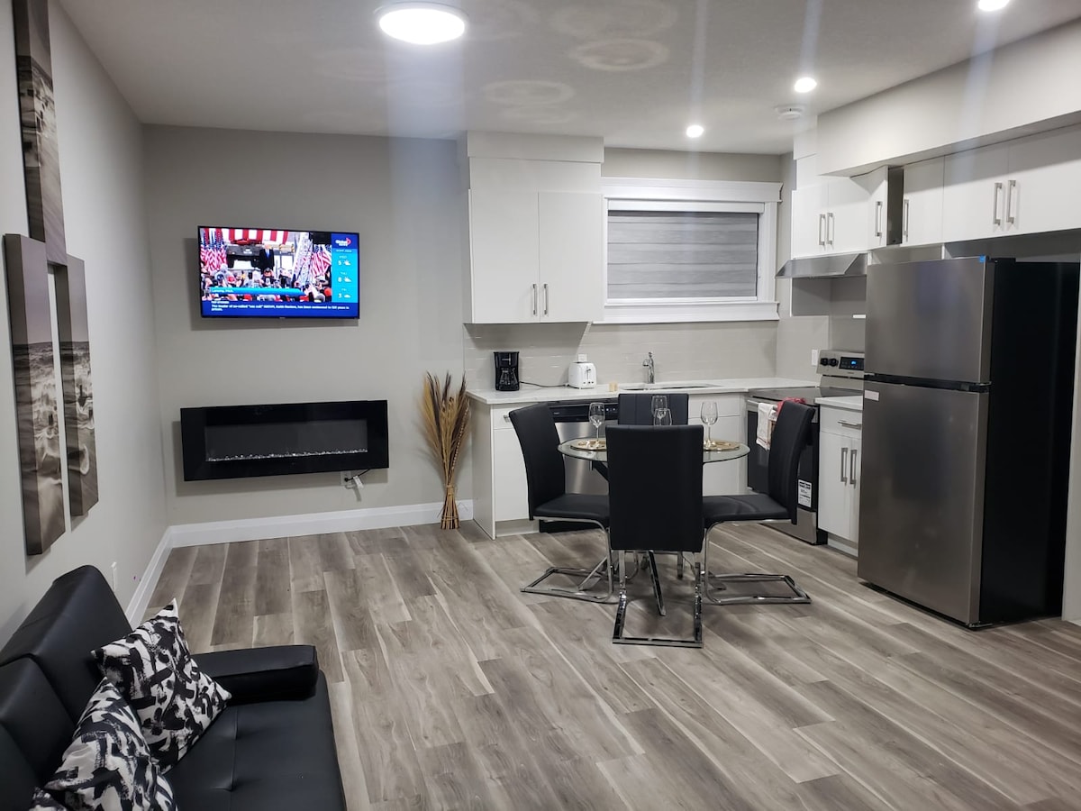 Alójate en esta flamante suite completa, libre de mascotas y libre de humo en Leduc, Alberta. La suite de dos dormitorios ofrece una entrada privada y da a un lago natural con un sendero para caminar. A solo 3 minutos del centro recreativo Leduc y cerca del aeropuerto internacional de Edmonton, así como del centro comercial Leduc Premium Outlet. Las características incluyen una cocina totalmente equipada, acogedoras habitaciones, internet de alta velocidad y su propia lavandería, patio con muebles, a 25 minutos del centro de Edmonton.