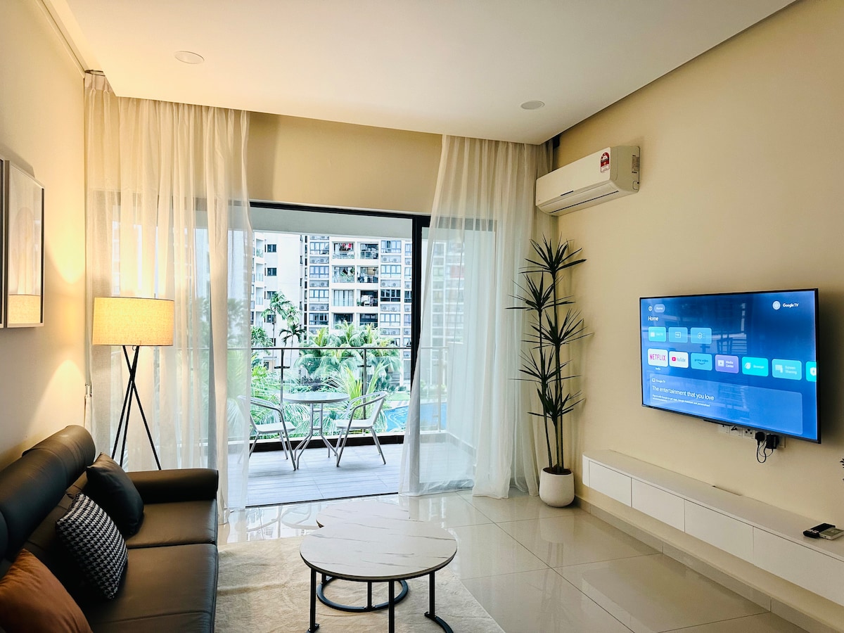 Ubicado justo enfrente de Legoland y del centro comercial de Medini en Nusajaya, Johor Bahru, este paraíso infantil único ofrece una gran comodidad a los viajeros con niños. Una combinación de vistas al lago y a la vegetación desde el balcón da la bienvenida a sus huéspedes con un ambiente tranquilo y espacioso. Elegante, magnífico y moderno describió perfectamente los muebles que contribuyeron a la cómoda sensación del lugar.