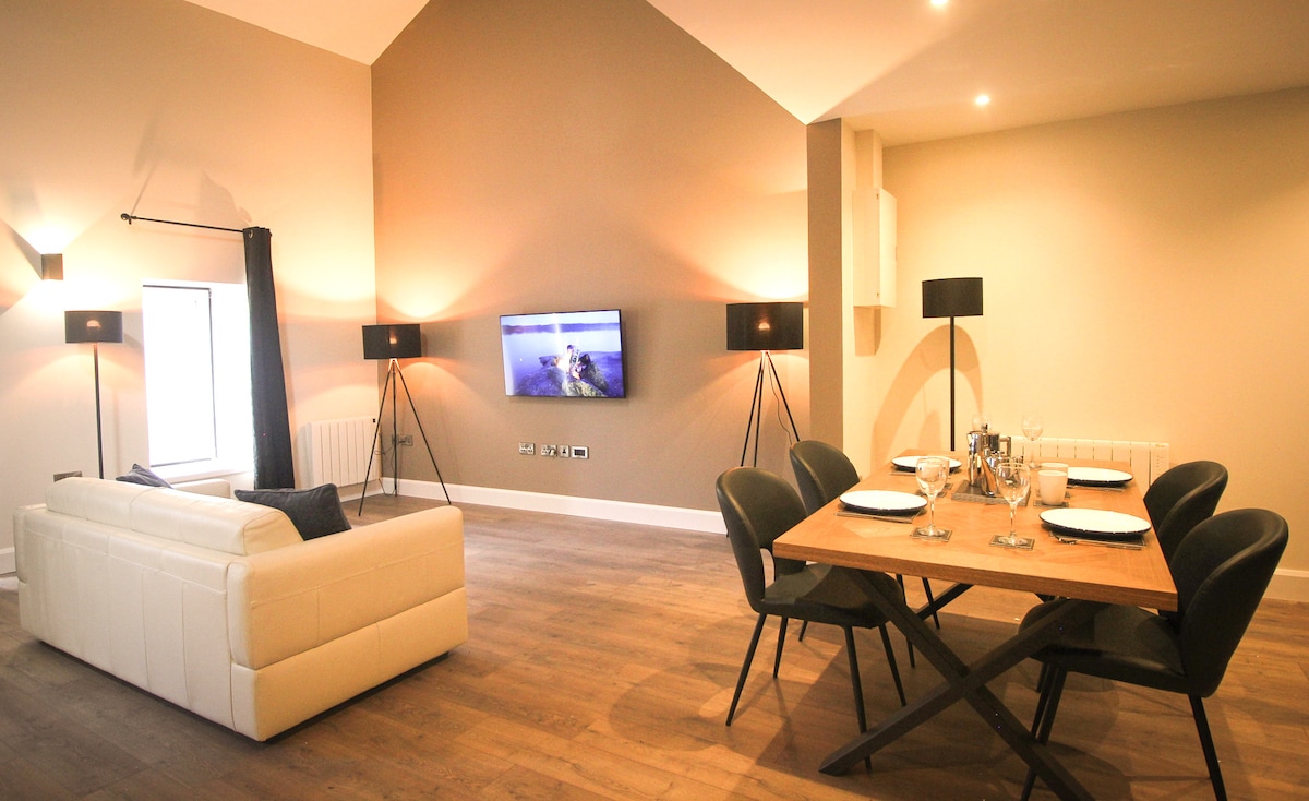 Este es el lugar perfecto para escapar de todo. Alojamiento de lujo en un entorno aislado. Apartamento independiente con 2 dormitorios, dos baños y una cocina de planta abierta, sala de estar y comedor con gran chimenea abierta. La cocina está totalmente equipada para cocinar y comer, incluyendo barra de desayuno y lavadora para la ropa. Los huéspedes tienen su propia entrada independiente y hay un amplio aparcamiento privado. Puede alojar cómodamente a 5 personas. Cuna y trona disponibles bajo petición.