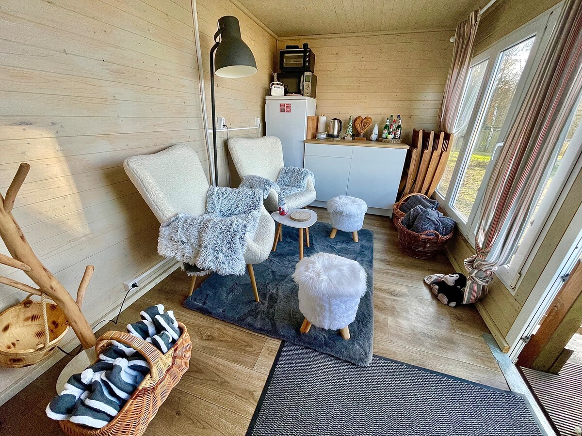 En medio del bosque, los prados y el campo se encuentra nuestro vagón de pastor y la sauna de barril. Tienes la oportunidad de alquilar ambos con nosotros de inmediato. Disfruta de la paz y la soledad justo en el borde del bosque, especialmente por la noche. La sauna está incluida en el precio y está a la vista. El ambiente rústico y autosuficiente se refleja en nuestro inodoro «exterior» y se encuentra en contraste con el acogedor vagón de pastor. Una cama matrimonial grande y una zona de estar amorosamente amueblada, perfecta para la unión.