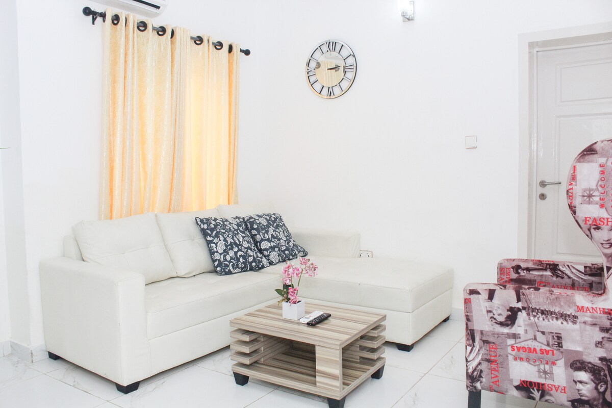 Make memories at this unique and family-friendly cozy place. 10 mins walk from private beaches (Laguna, Atican, Barracuda Etc) I enjoy this house so much, and I want you, your family and friends to have it to yourselves and enjoy it in its entirety. Feel at home here, with: 24hrs Solar-powered/grid electricity/Gen WiFi 2 Living rooms with AC & Cable TV 4 Bedrooms with En-Suite & AC Gym Free Parking Fully Equipped kitchen The Estate is peaceful and serene with 24hours Security. Enjoyable stay!