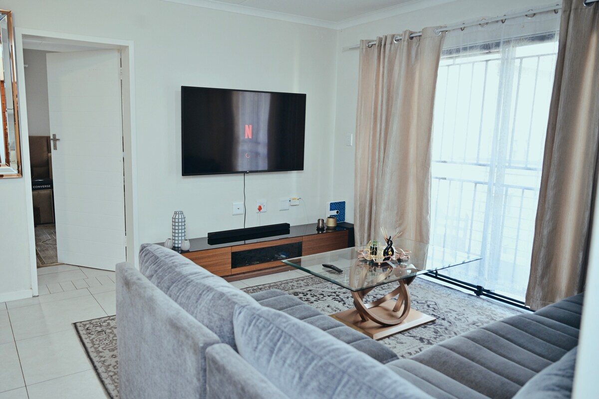 Enjoy a futuristic experience at a secure and safe estate with this SMART apartment fully equipped with Smart lights + Smart access + Digital host assistance. Enjoy Apple TV, Apple Music, Spotify and more on the Smart TV or via Alexa by just using voice commands. Enjoy High-speed fibre connectivity @ 25Mbs even during load shedding with our backup power. Scheduled national power outages occur periodically to stabilize the electricity supply. A schedule will be provided so you can plan.