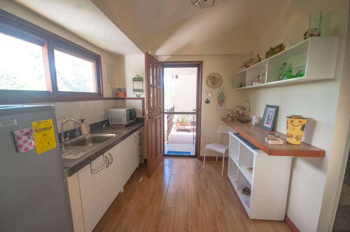 Nuestro estudio de estilo americano cuenta con una pequeña cocina. ¡Bienvenido a la esquina superior de Kaylyn! Nuestra nueva casa de huéspedes de 45 metros cuadrados de tamaño, que nos encantaría disfrutar. Cerca de la ciudad de Tacloban, este espacio es un gran hogar lejos de casa, con un plano de piso espacioso pero con una decoración cálida y reconfortante. Viene con cocina con cocina y baño grande, elegantes pisos de madera y acogedoras decoraciones. Tendrás tu propia entrada independiente.