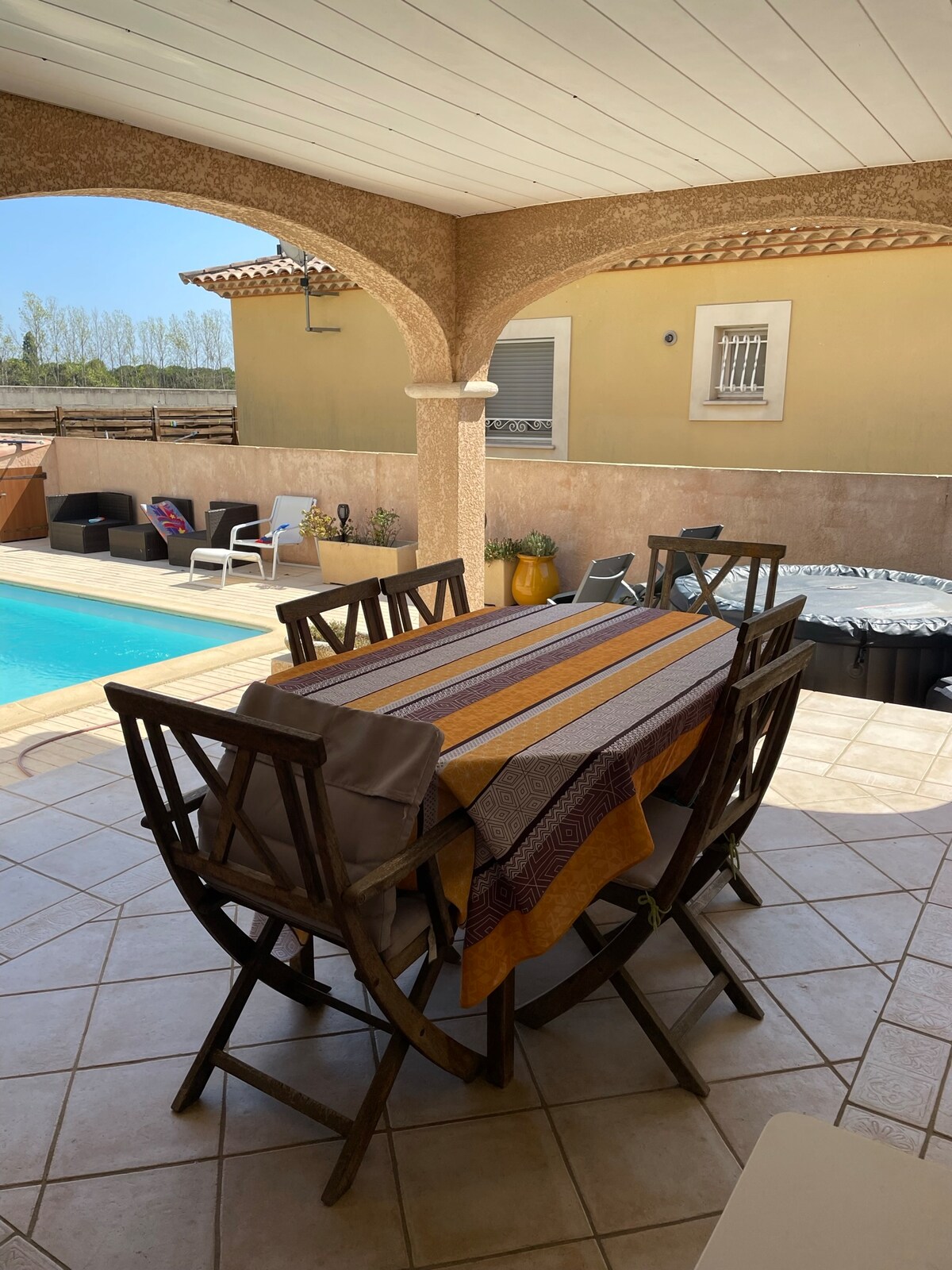 Habitación privada en nuestra villa familiar cerca de Montpellier. La habitación está bien equipada y es espaciosa, con una puerta ventana que da al jardín, una tranquila vista de la piscina y los árboles. Desayuno de cortesía (té, café, pan, mermelada...). Se le reservará un cuarto de baño privado, directamente accesible desde la habitación (un pasillo para cruzar). El entorno es notablemente tranquilo, aparcamiento gratuito en la calle, acceso al tranvía a pie (aproximadamente 25 minutos).