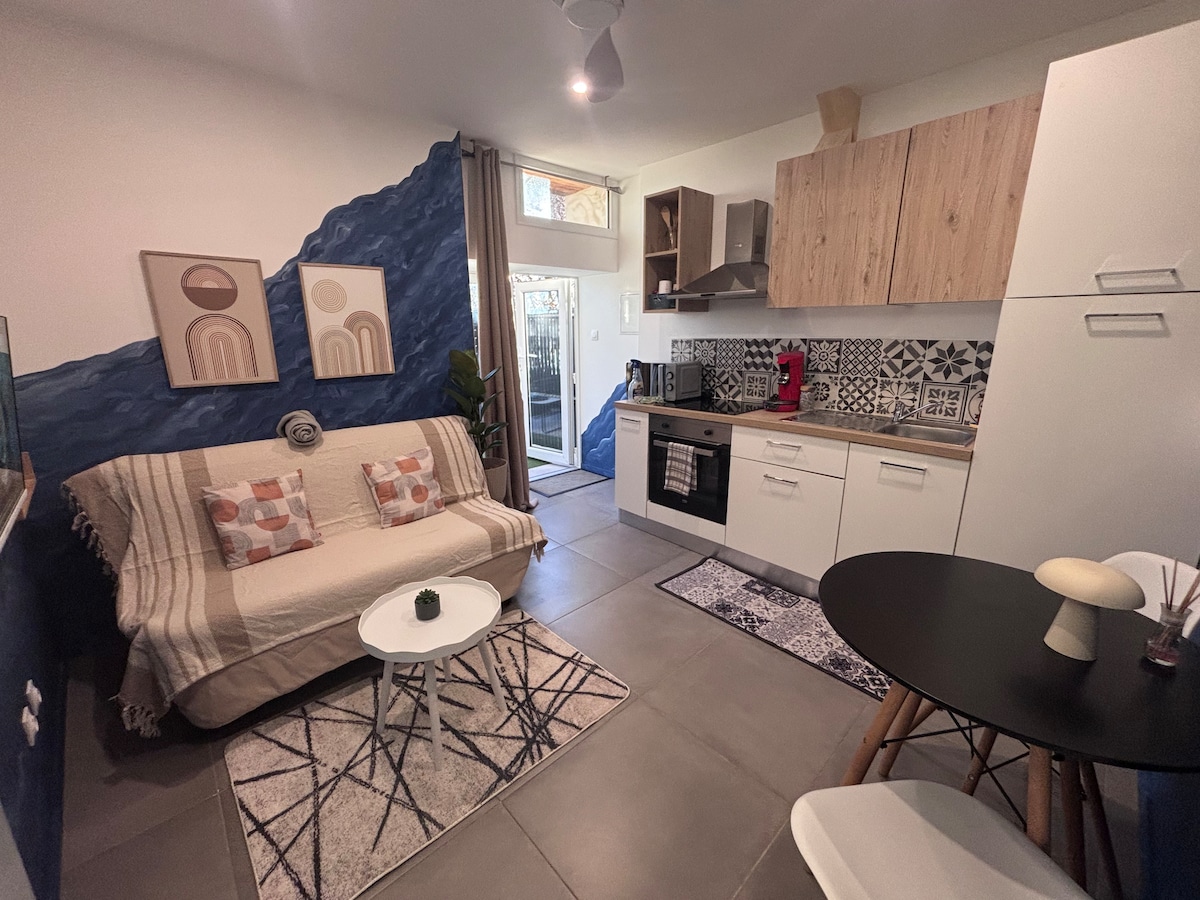 Valoración media de 4,77 sobre 5, 26 evaluacionesEstudio Bleu de diseño y aparcamiento privado Escapada en pareja