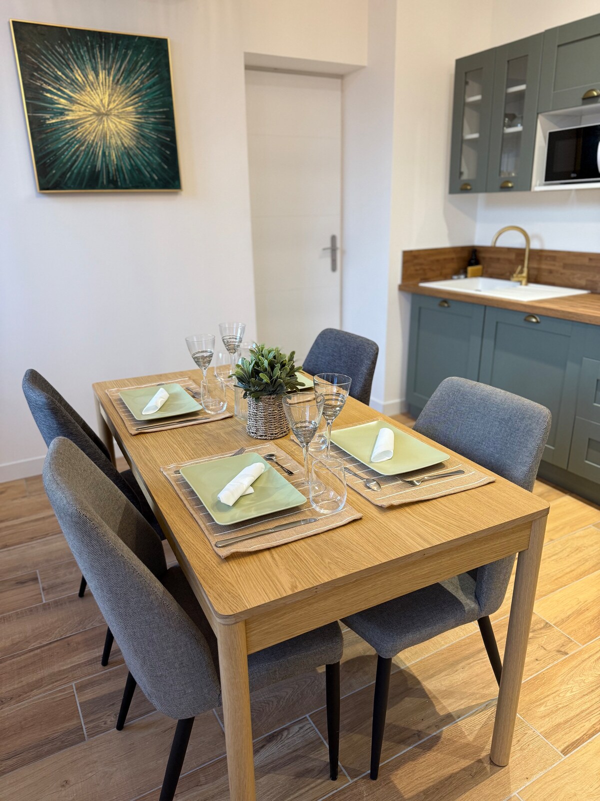 ✨¡Bienvenido a Orange!✨ Este encantador apartamento de lujo, situado en pleno centro histórico, le ofrece todas las comodidades necesarias: habitación espaciosa y confortable, sala de estar luminosa con sofá cama, TV, wifi de alta velocidad y cocina totalmente equipada. El pequeño plus: balcón y patio acogedor para sus comidas, aperitivos o momentos de relajación, con una agradable vista de la puesta de sol. Estación de tren a 10 minutos a pie, autopista a 2 minutos, aparcamiento gratuito al lado del edificio (ver condiciones).