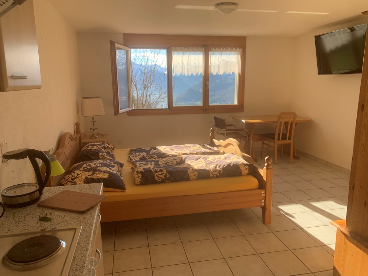 Du wohnst in einem hellen Schlafzimmer mit Balkonzugang und beeindruckender Aussicht auf das ganze Land. Highlights: ✔ Ruhige Lage ✔ Langer Balkon & Garten mit Sitzplatz und Grill ✔ Wohnzimmer mit PS4 & gemütlicher Couch ✔ Küche mit großer Sitzecke und Esstisch ✔ Dusche und Badewanne ✔ Gratis WLAN & Parkplatz vor dem Haus ✔ Ideal für Wanderer, Familien, Radfahrer, Businessreisende