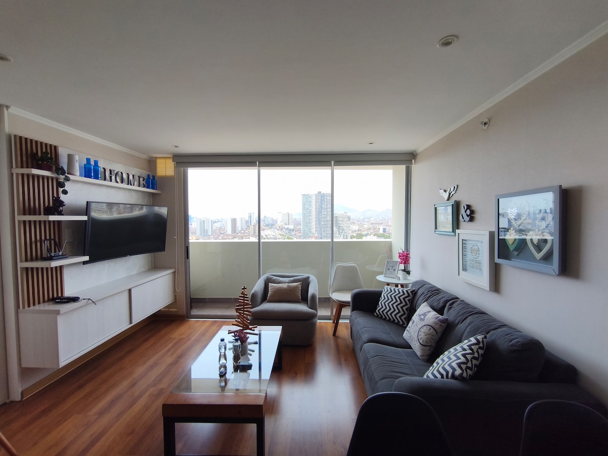 Departamento súper bien ubicado en Surquillo, cerca a distritos como Miraflores, San Isidro, San Borja y Surco, cerca a centros comerciales y avenidas grandes, ideal para familias ya que cuenta con 1 dormitorio con TV de 55" con cama queen, sofá cama, baño completo, Kitchenette, sala con TV de 86", y todo lo necesario para una buena estadía, piso 10. Cuenta con zona común de parrillas, sala de billas, gimnasio, cine, lavandería industrial, zona de parrillas (previo pago).